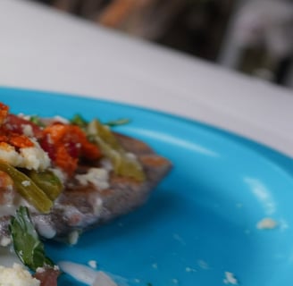 Paso final preparar el tlacoyo. Esto ya es cuestión de gustos, pero por lo general van con crema, ensalada de nopales, queso, salsa y si están en Guerrero, generalmente van con su puñito de semillas de calabaza.